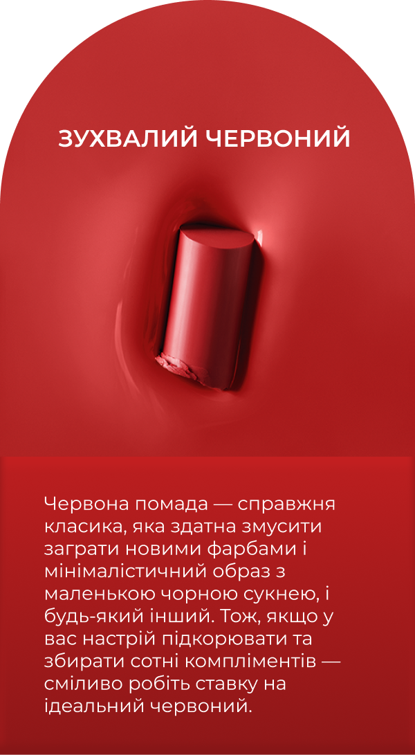 Червона помада — справжня класика, яка здатна змусити заграти новими фарбами і мінімалістичний образ з маленькою чорною сукнею, і будь-який інший. Тож, якщо у вас настрій підкорювати та збирати сотні компліментів — сміливо робіть ставку на ідеальний червоний. Good design is obvious. Great design is transparent.