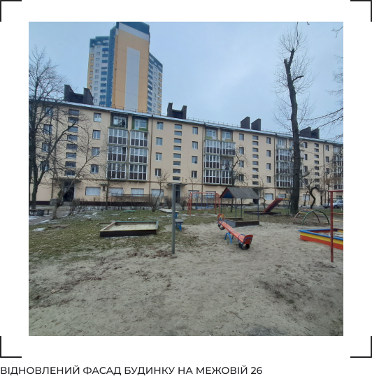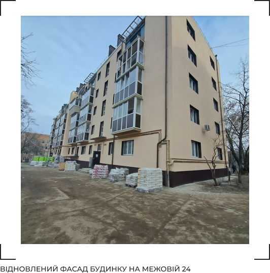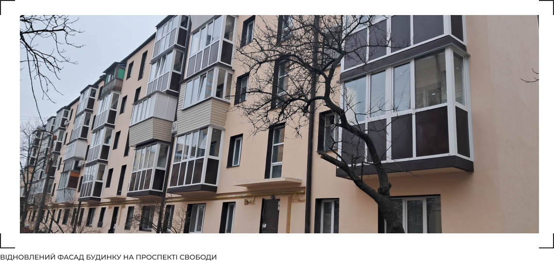 На цей час будівельники замінили у постраждалих багатоповерхівках двері та вікна, а також полагодили балкони. Окрім того, утеплили фасад, встановили освітлення з датчиками руху задля економії електроенергії, й найголовніше – відремонтували покрівлю.