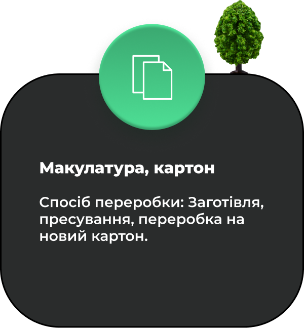 Спосіб переробки: Заготівля, пресування, переробка на новий картон.