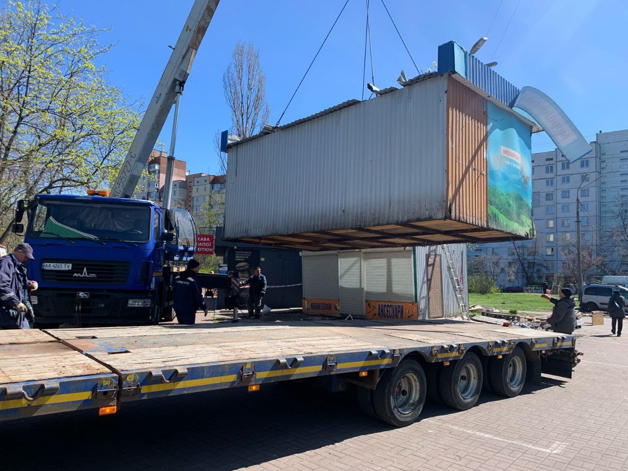 На вулиці Героїв полку "Азов", що біля станції метро "Оболонь", демонтували МАФи, в яких закінчився термін дії дозвільних документів.