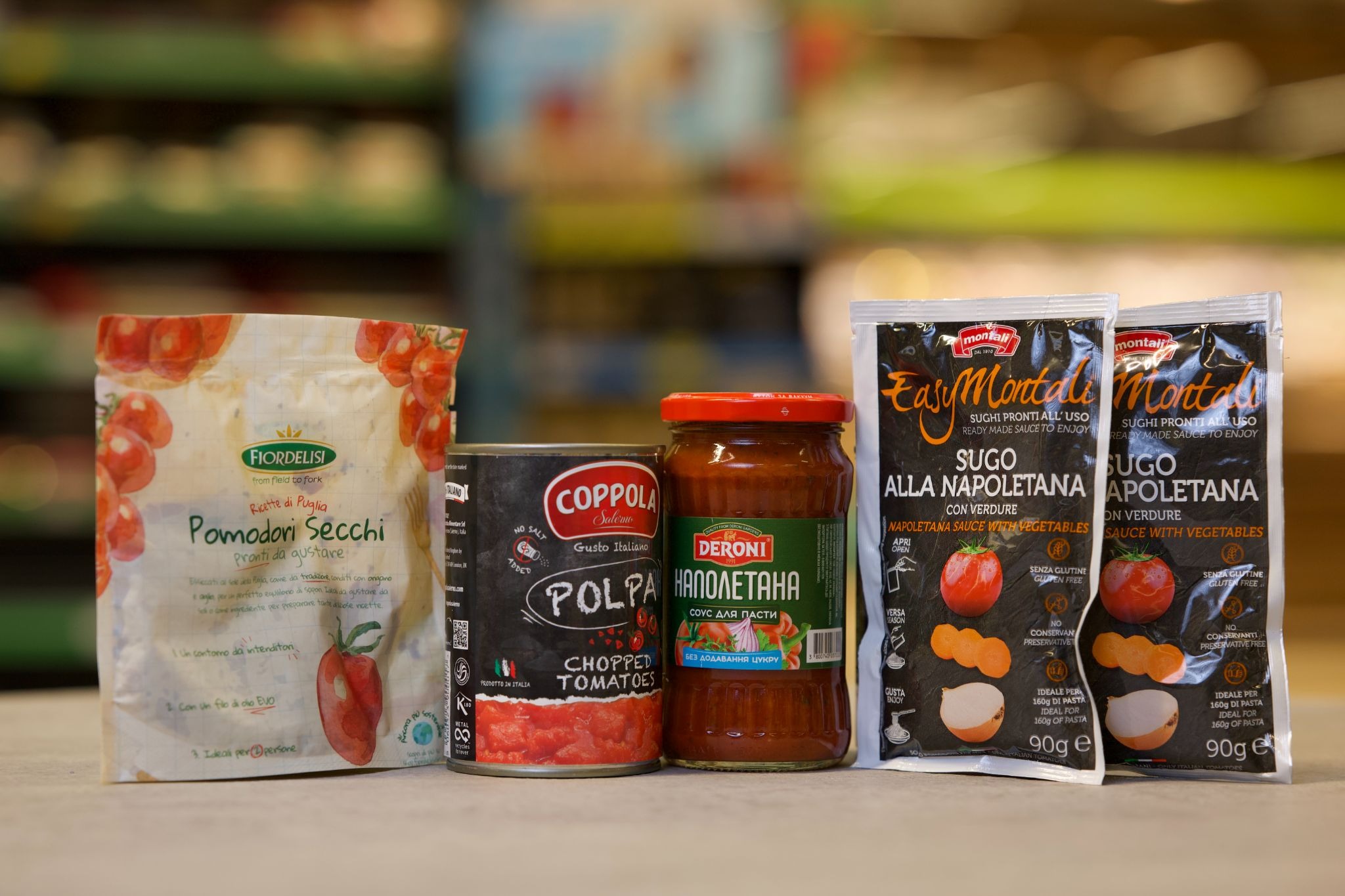 - Соуси Mutti (з пармезаном / з оливками / для піци) — від 86,99 грн