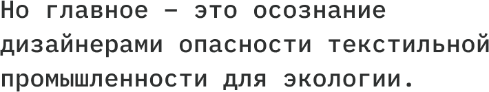 с ними мелькали другие истории – о платьях, которые сделаны из водорослей или туфлях, разлагающихся за сутки. Это то, что происходит с модой за границей сейчас.