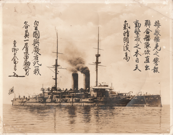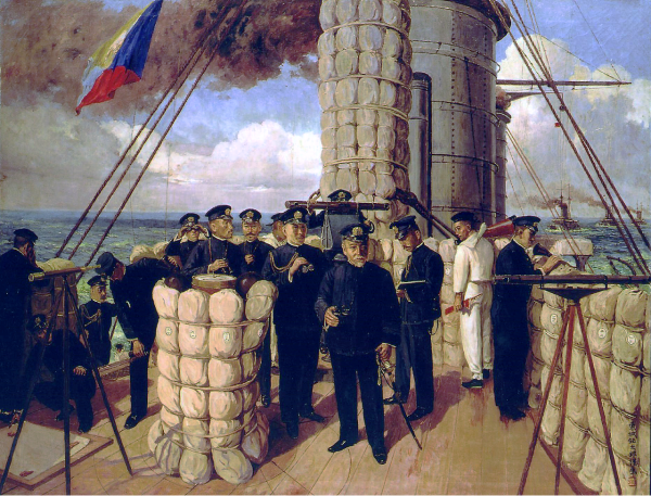 Командувач японського флоту адмірал Тоґо Хейхатіро на флагмані «Мікаса» у Цусімській битві 1905 року.