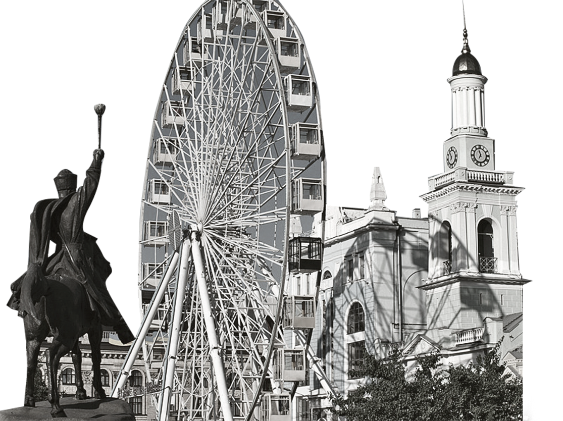 На Контрактовой площади есть много прикольных штук. Например, статуя-фонтан Самсона разрывающего пасть льву (звучит лучше чем выглядит), театр оперы и балета, огромное колесо обозрения и сквер имени Григория Сковороды.